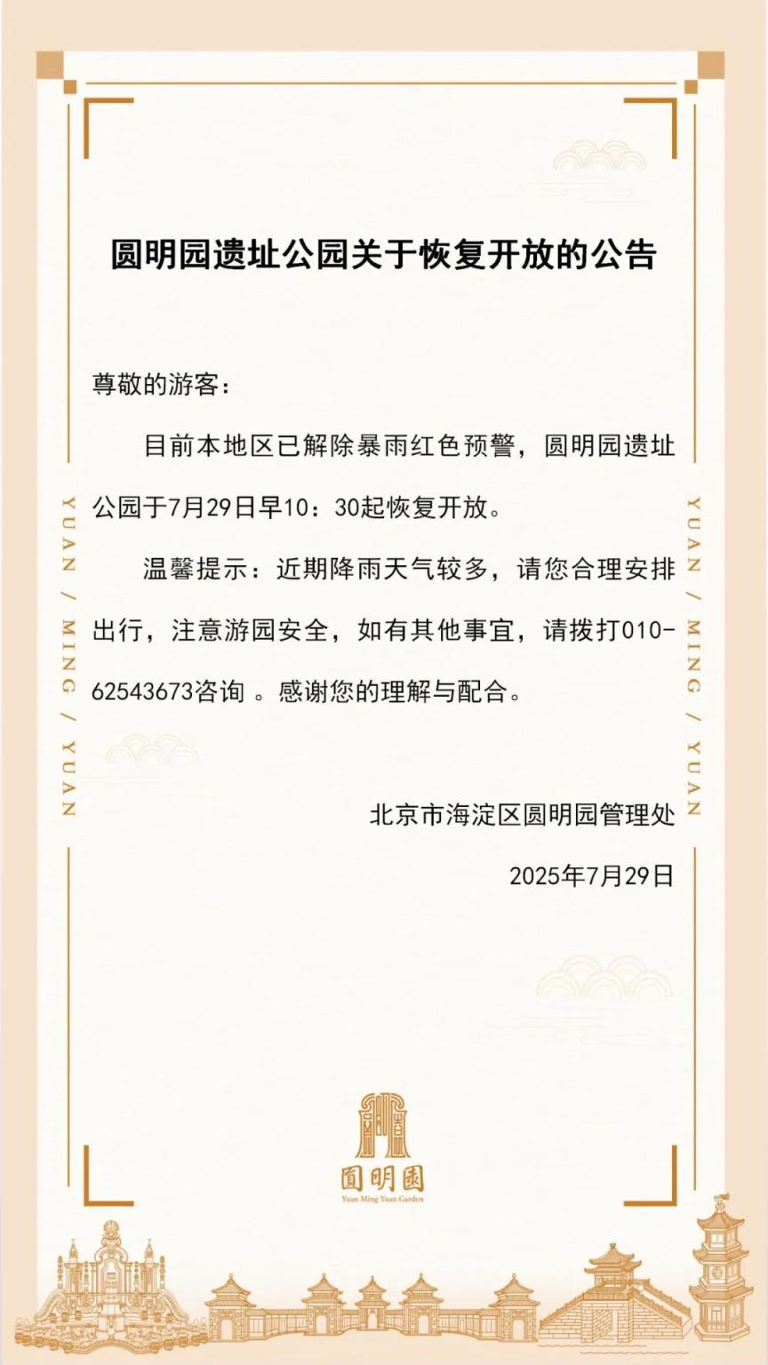 创利融配资 圆明园遗址公园29日早10:30恢复开放